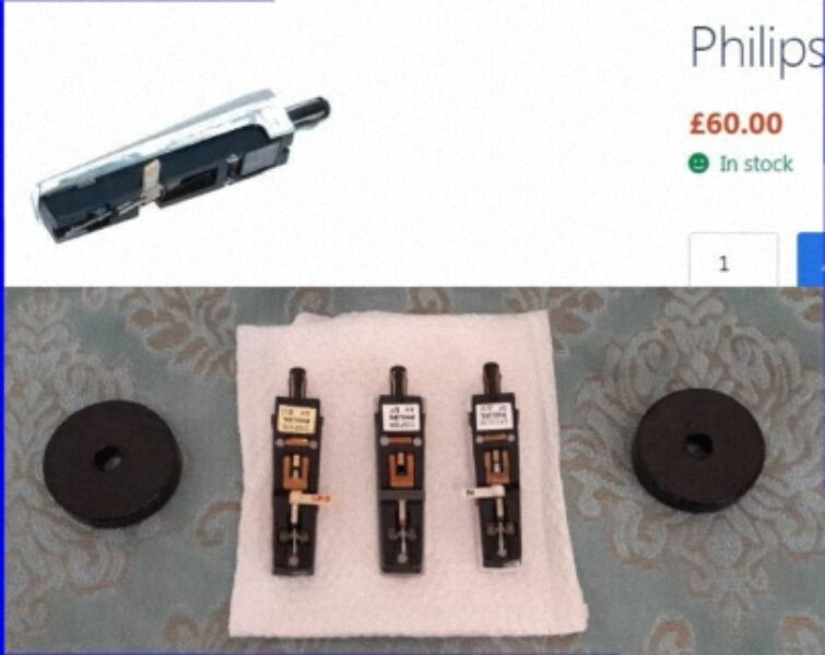 3 عدد ست سوزن و پیکاپ Cartridge/Needle گرام فیلیپس اصل در حد نو و وارداتی از اروپا، در سه مدل GP224 – 22GP205 . 22GP204 که در سایتهای اروپائی از 25 یورو تا حدود 66 پوند(بدون هزینه ارسال پستی) بفروش میرسد، قیمت هر ست سوزن و پیکاپ فیلیپس اصل بسته به نوع مدل، از 2 میلیون و 900 هزار تومن تا 3 میلیون و 700 هزار تومن. و یک هم عدد سوزن فابریک گرام دوال Dual DN52 اصل المان فابل نصب بجای سوزن گرام فیلیپس سری GP- به قیمت 2 میلیون و 300 هزار تومن. و نیز تعدادی آداپتور مبدل برای صفحه های 45 دور ساخت رومانی و بسیار با دوام، هر کدام به قیمت 650 تومن.